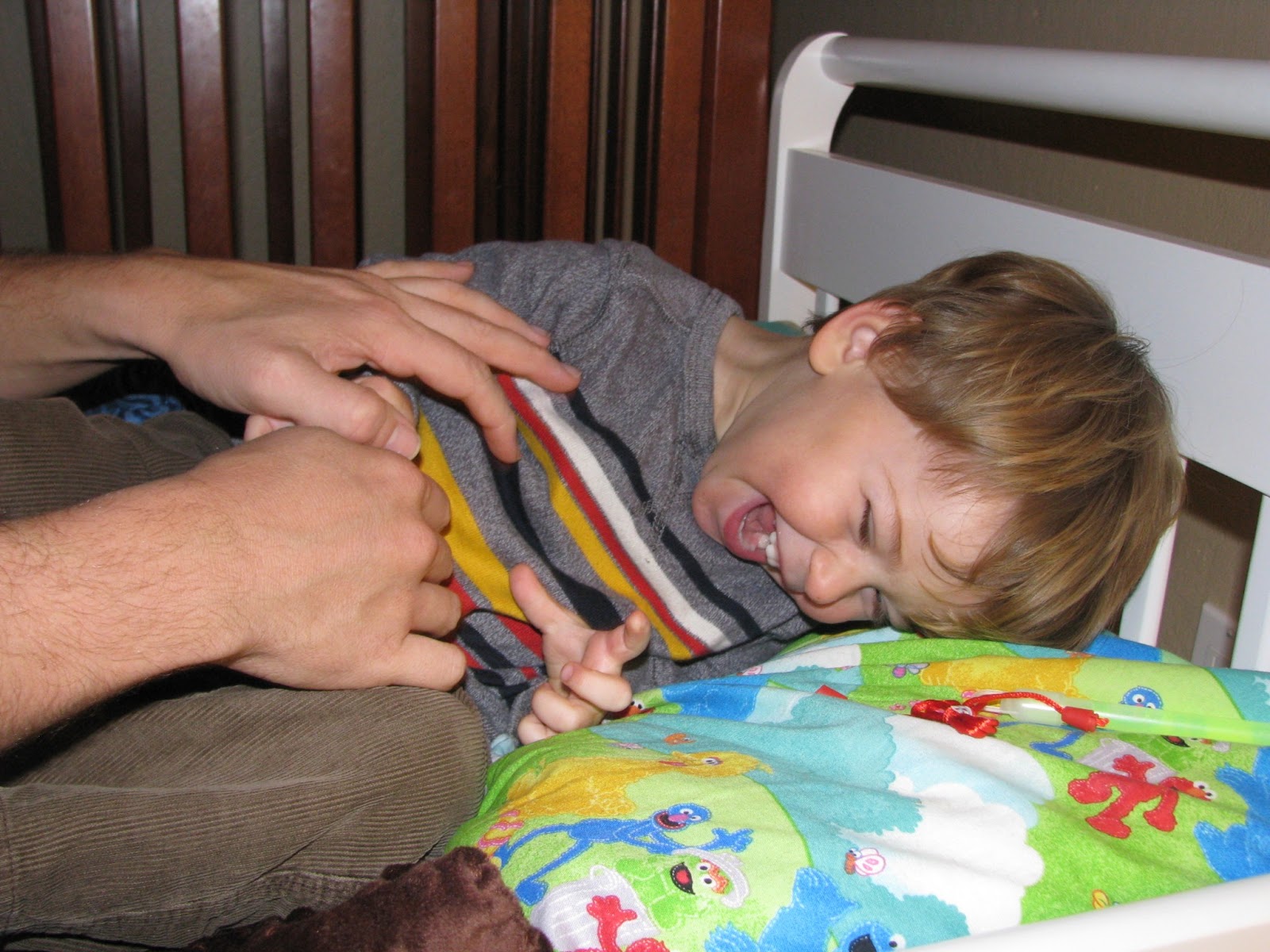 He's still playing a lot of imagination games, but he also can sit for about twenty minutes and learn about letters or numbers. Tonight he recited the whole alphabet in a row. Twice. We gave him a standing ovation. It's awesome to see him grasping fundamental ideas. When we use words with opposites, we're trying to remember to ask him what the opposite of "front" or "up" or "empty" is.